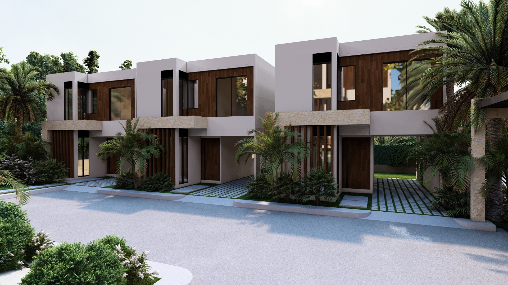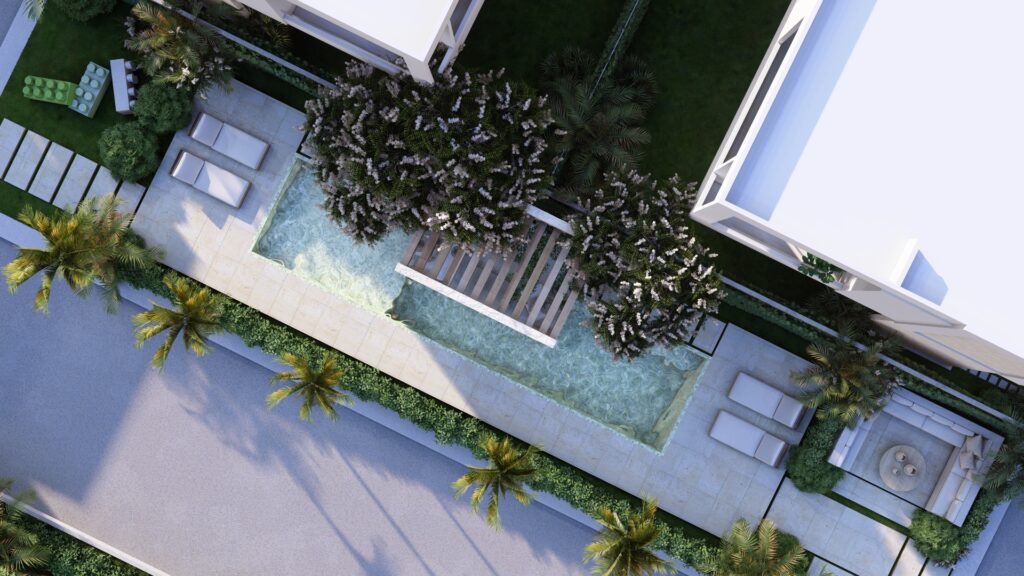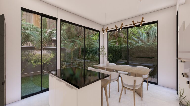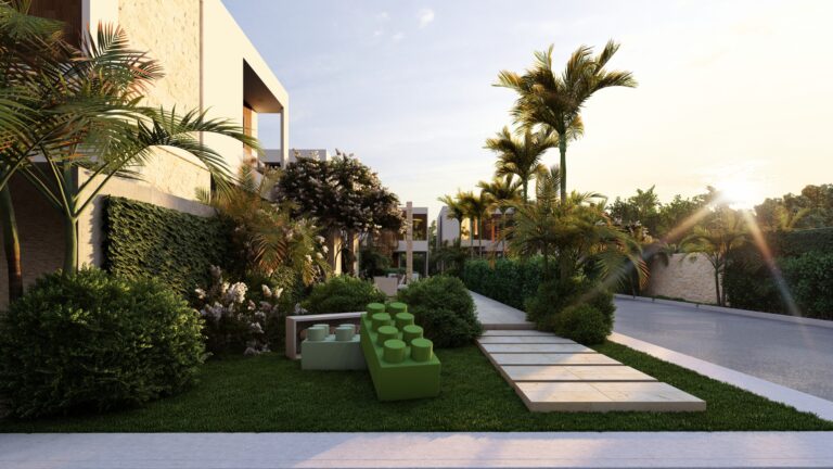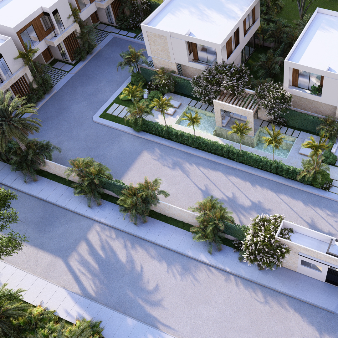 LAS VILLAS DE DOS NIVELES, RODEAN UN AREA SOCIAL CENTRAL CON UN CONCEPTO OASIS EN EL MEDIO DE LA CIUDAD