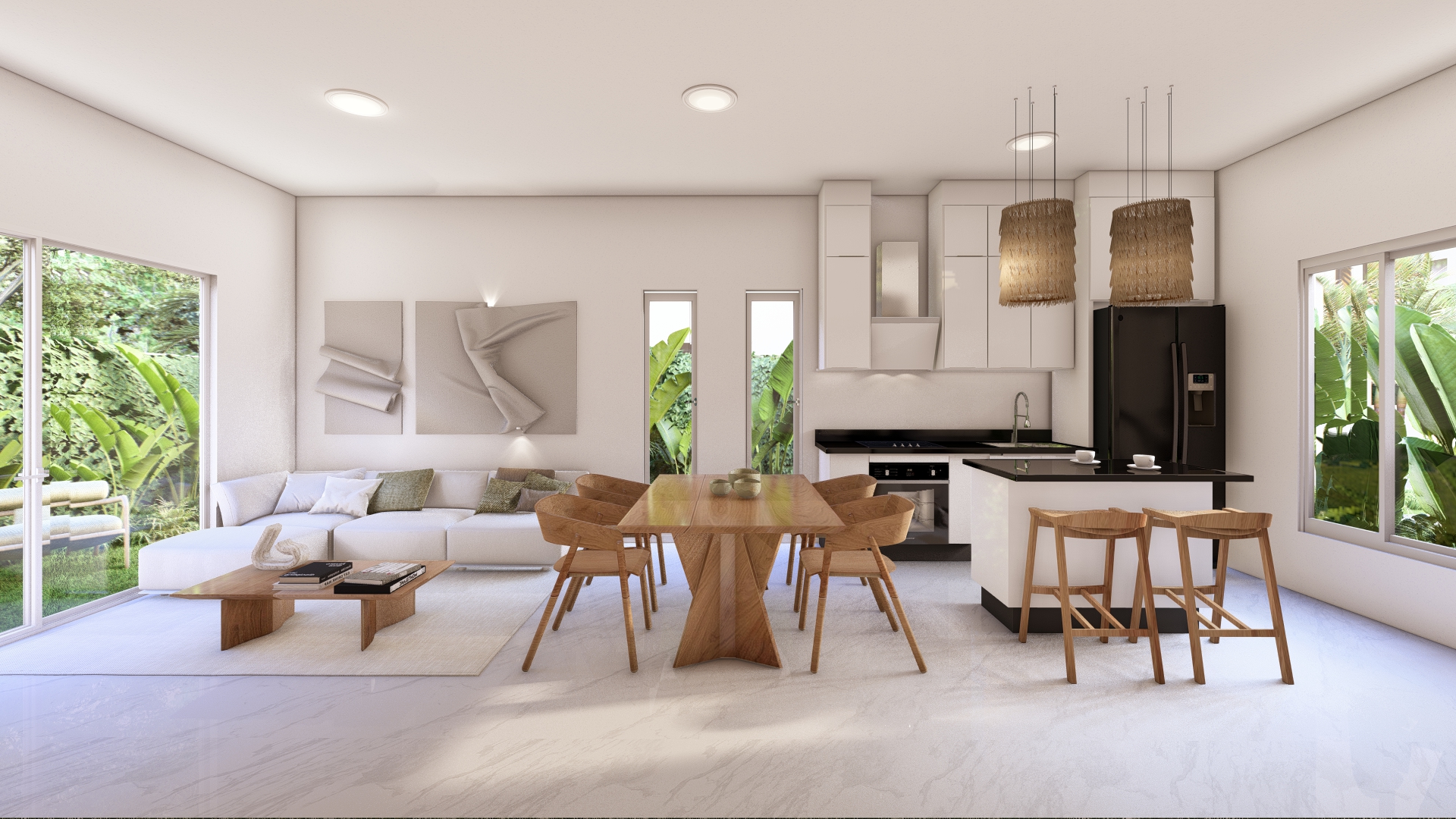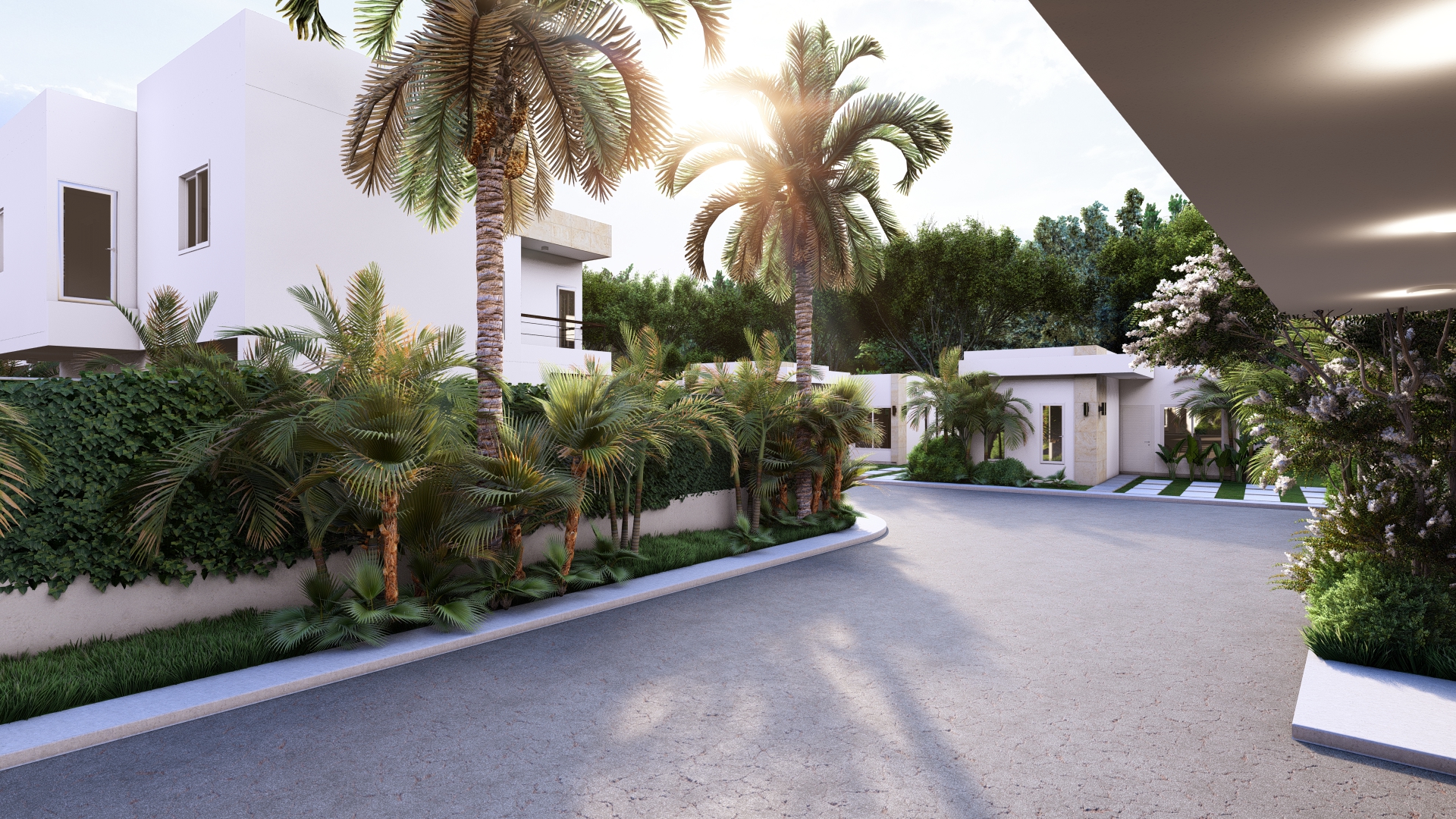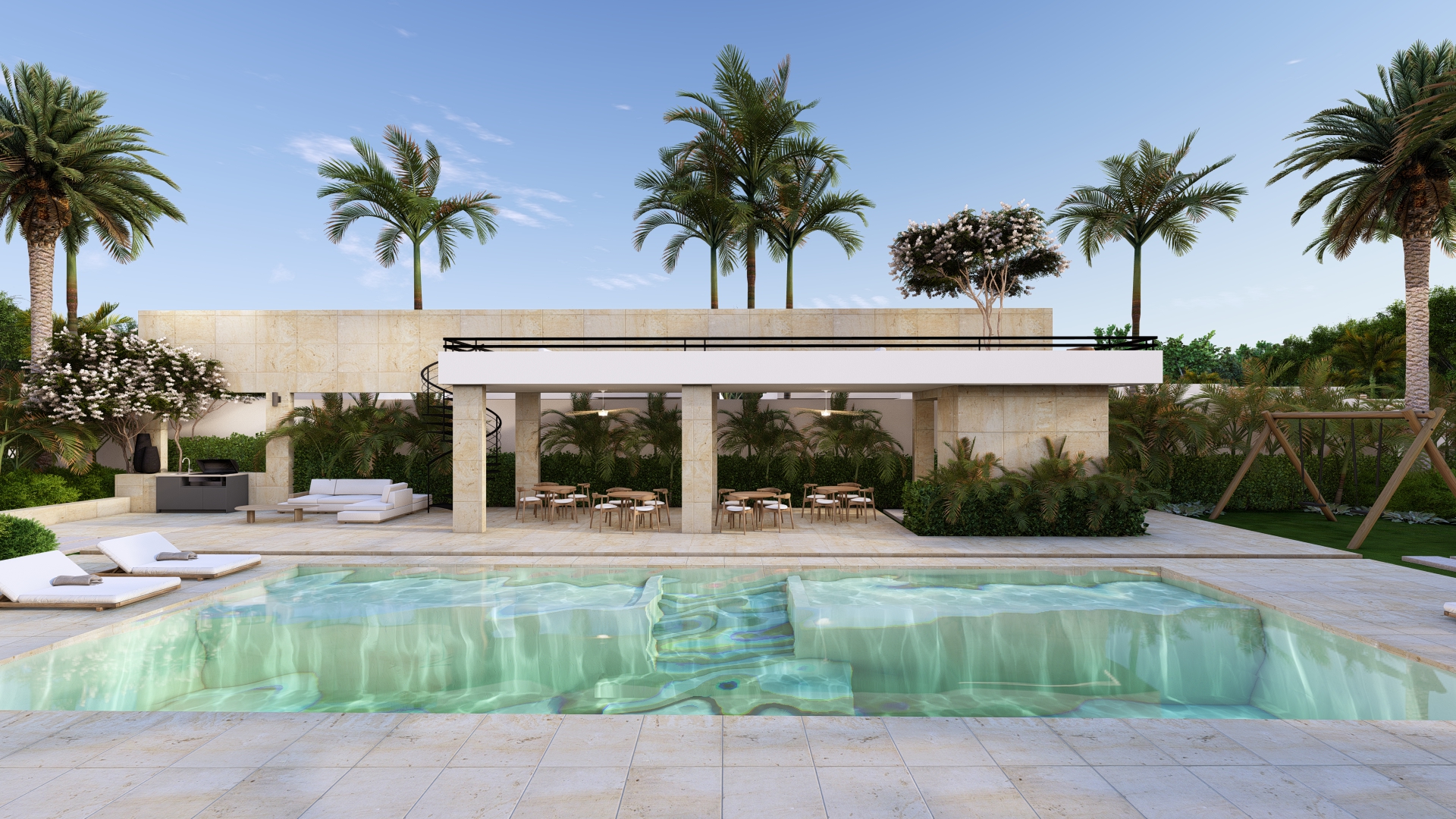 LAS VILLAS DE UNO Y DOS NIVELES, RODEAN UN AREA SOCIAL CENTRAL CON UN CONCEPTO OASIS CERCA DE LA PLAYA